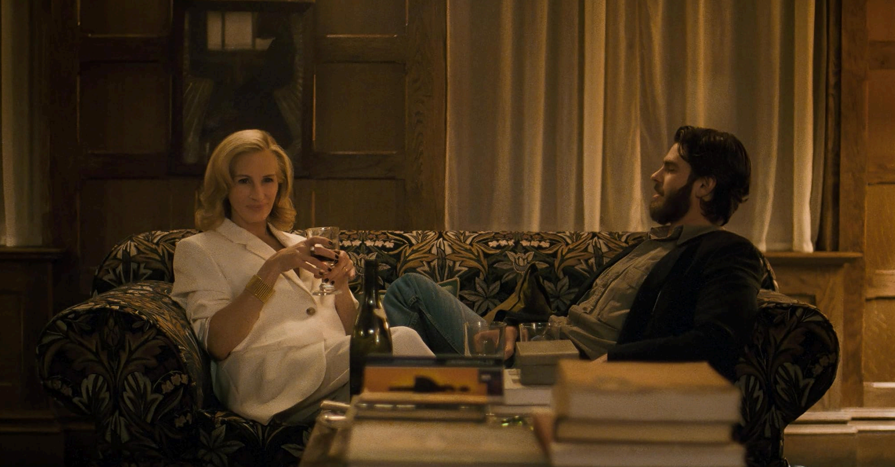 Παράλληλα, μαθαίνουμε πως η Maggie είναι queer και σε σχέση με ένα non-binary άτομο, στοιχείο που ο Guadagnino χειρίζεται διακριτικά αλλά ουσιαστικά, ως ακόμη μία όψη του περίπλοκου πλέγματος ταυτοτήτων που κινεί την ιστορία. Μέσα σε αυτό το καλοστημένο σκηνικό, χτίζεται μεθοδικά το έδαφος για τους πρώτους διαλόγους υψηλής έντασης, εκεί όπου, πίσω από τα καλλιεργημένα επιχειρήματα, αρχίζουν να διαφαίνονται οι πρώτες ρωγμές στην προσεκτικά δομημένη εικόνα της απεικονιζόμενης μπουρζουαζίας.