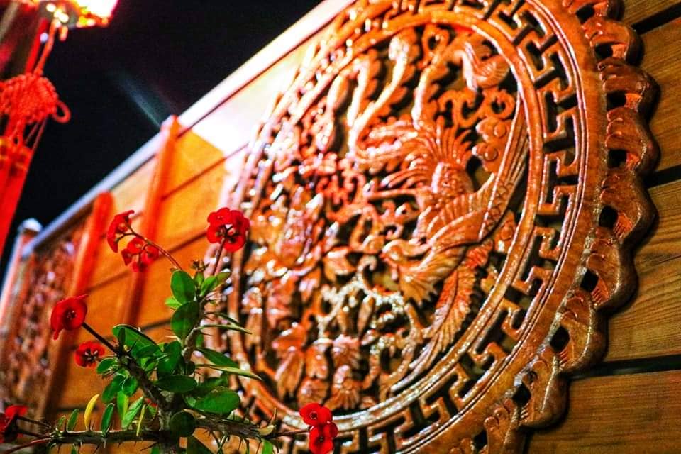 Η κινεζική αρχιτεκτονική ανοίγεται διάπλατα με το που περάσεις το κατώφλι του εστιατορίου. Δύο χρυσά ομοιώματα λιονταριών θα σε υποδεχθούν καθως τα στρογγυλά τραπέζια και οι ξύλινες καρέκλες με τα σκαλισμένα ιδεογράμματα της κινεζικής παράδοσης θα σε ταξιδέψουν αμέσως. Τα φυτά στο χώρο δίνουν μια άλλη πνοή στη διακόσμηση και θυμίζουν σκηνές από κινεζικές ταινίες. Θα παρατηρήσεις ζωγραφιές στους τοίχους που σε μεταφέρουν στην κινεζική κουλτούρα. Το όλο περιβάλλον είναι φιλικό και εκπέμπει στον “πεινασμένο” επισκέπτη μια αίσθηση οικειότητας.