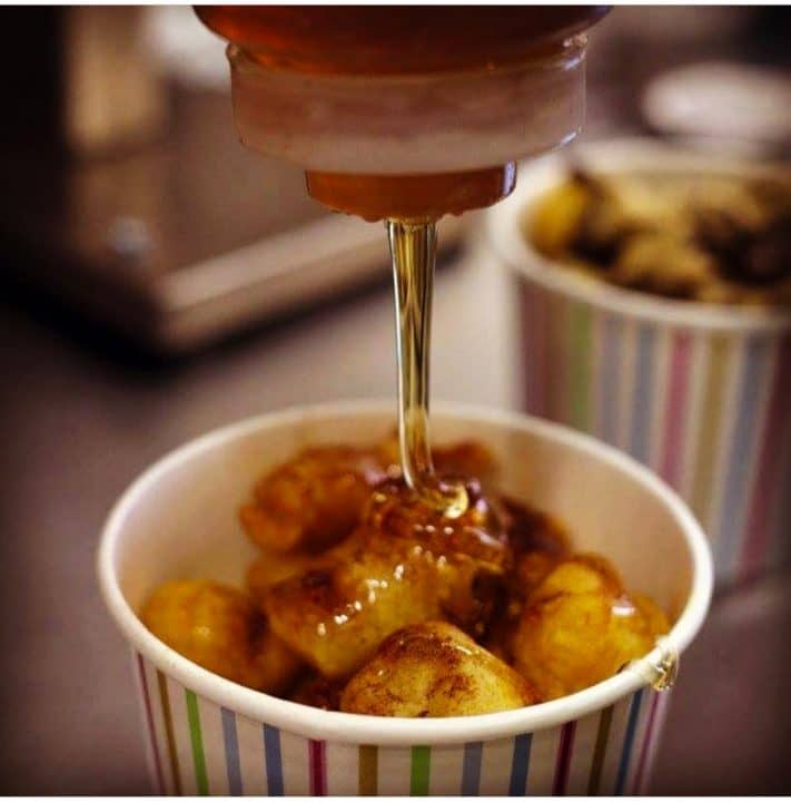 Οι vegan επιλογές είναι η κλασική μέλι κανέλα, η γεμιστή με μπανάνα και επικάλυψη μαύρη σοκολάτα. Γενικότερα, όμως, όσοι είναι vegan έχουν να διαλέξουν από μία μεγάλη γκάμα προϊόντων που μπορούν να βάλουν στους λουκουμαδες.