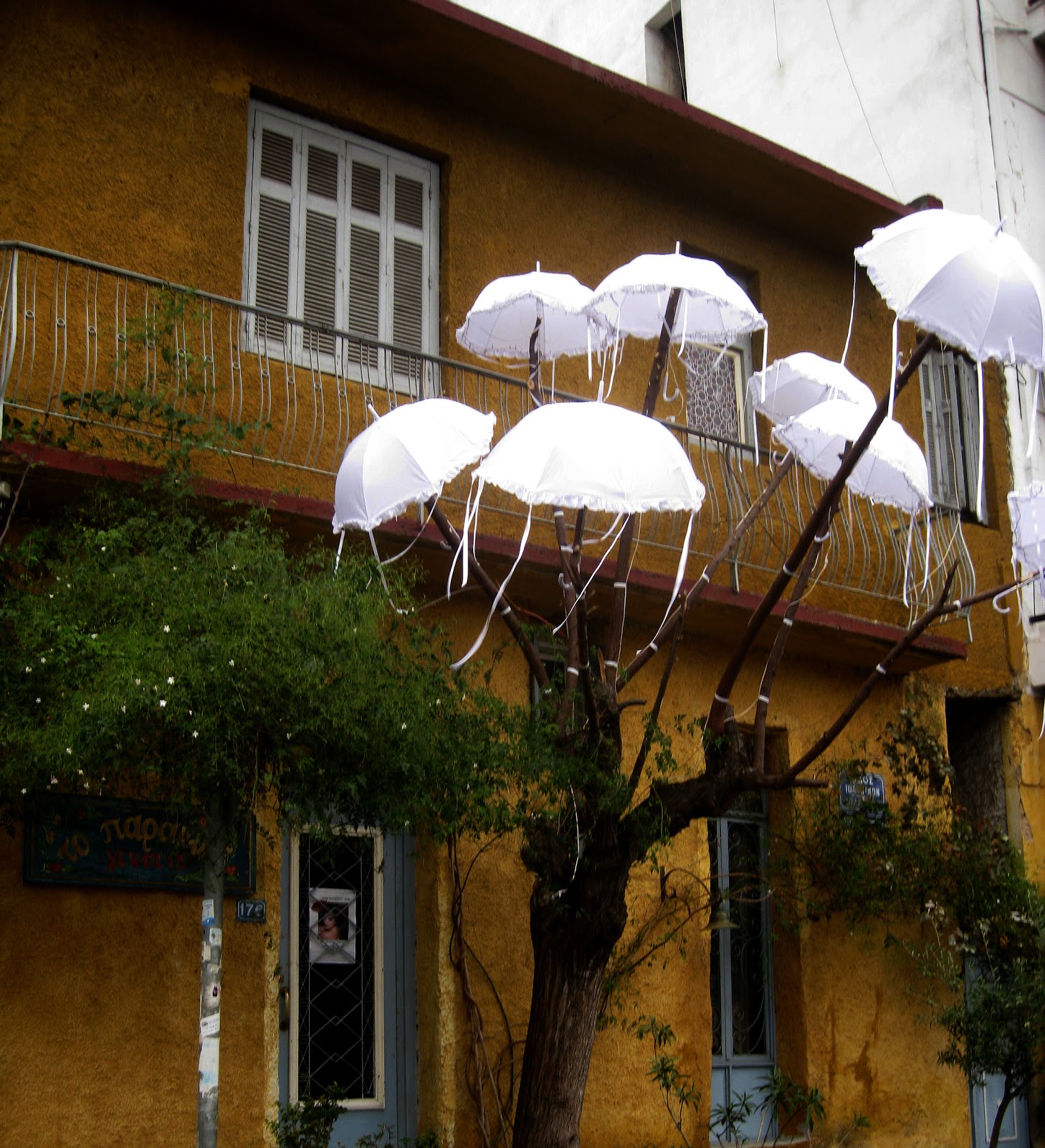 Απέναντι από το ΧΟΜ βρίσκεται κρυμμένο ένα πολύ όμορφο εστιατόριο, το Παραμύθι. Θα το αναγνωρίσεις από τις φωτισμένες ομπρέλες στα δέντρα, αν και δεν σου πάει το μυαλό για τι είδους εστιατόριο είναι, όπως επίσης δεν θα μπορούσες να φανταστείς ότι ένα «κυριλλέ» μαγαζί θα έδενε τόσο αρμονικά σε μια χύμα περιοχή. Το Παραμύθι το καταφέρνει.