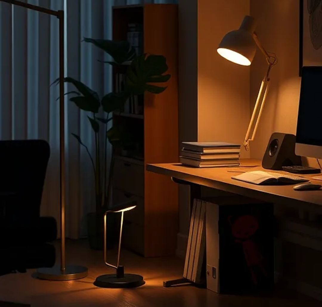 Για το φωτιστικό εργασίας χρησιμοποιήσουμε ψυχρό φως, μεταξύ 4.000K – 5.000K, οπού ενδείκνυται για αυτή τη χρήση.