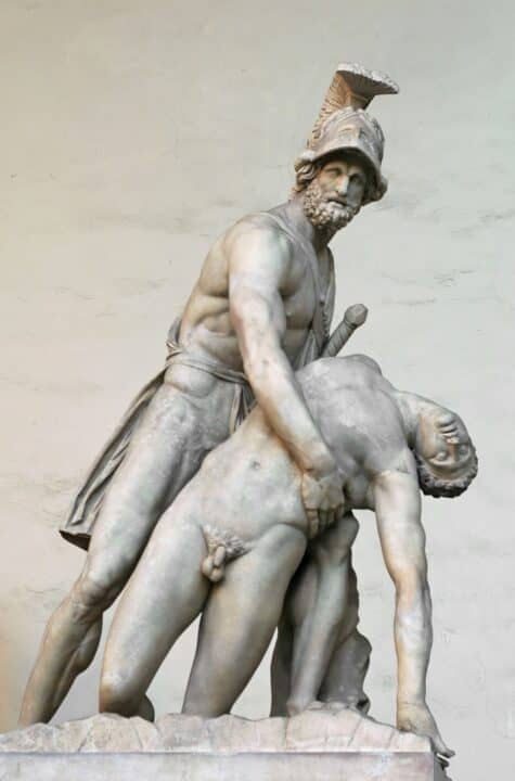 Το σύμπλεγμα Pasquino μας οδηγεί στον Τρωικό κύκλο. Τα γλυπτά εικονίζουν -σε μια παλαιότερη ερμηνεία- τον Μενέλαο να κουβαλάει το άψυχο σώμα του Πατρόκλου ή, πιο πιθανόν, τον Αίαντα να κουβαλάει τον Αχιλλέα. Σύμφωνα με την Ιλιάδα, ο Πάτροκλος αφού πάρει τα όπλα του Αχιλλέα, κατευθύνεται στη μάχη για να αντιμετωπίσει τον Έκτορα. Ο τελευταίος με τη βοήθεια του Απόλλωνα, καταφέρνει να σκοτώσει τον Πάτροκλο, τον οποίο τελικά μεταφέρουν στο στρατόπεδό τους οι Αχαιοί.