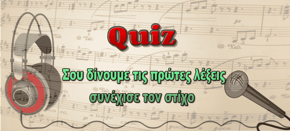 συνέχισε τον στίχοΣου δίνουμε τις πρώτες λέξεις, συνέχισε τον στίχο! Ένα κουίζ γεμάτο μουσική, υπέροχους στίχους, διαφορετικούς καλλιτέχνες και ακούσματα. Ψάξαμε για εσένα τραγούδια γνωστά, που όλοι αγαπάμε και προσπαθήσαμε να σου βάλουμε στίχους, που δύσκολα ξεχνά κανείς.