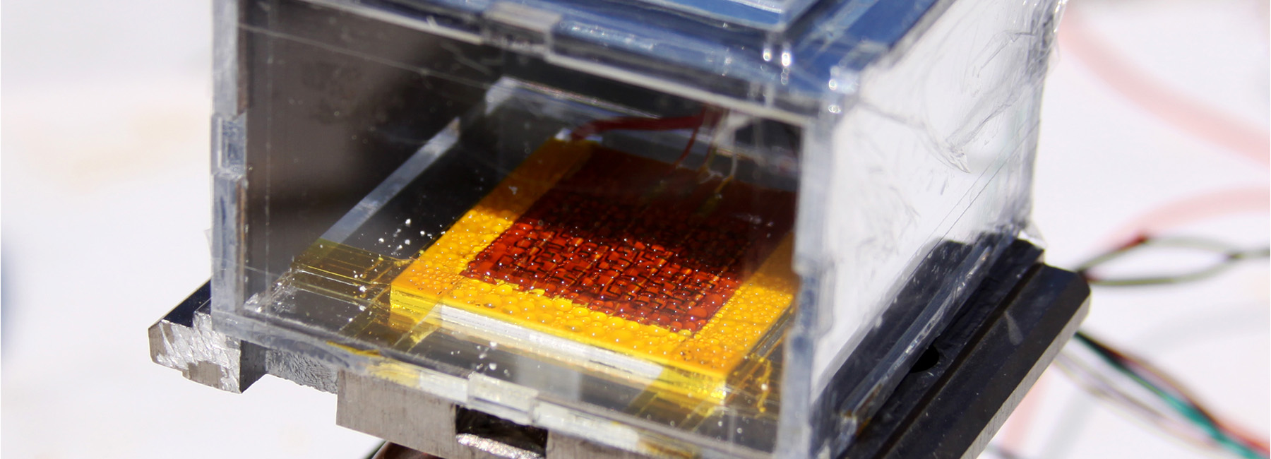 Μέσα σε ένα κουτί έχει τοποθετηθεί ένα πορώδες υλικό, που ανήκει στην κατηγορία των μεταλλο-οργανικών πλαισίων (MOFs), βαλμένο μέσα σε ένα λεπτό φύλλο πορώδους χαλκού. Τα MOFs είναι χημικές ενώσεις που αποτελούνται από ιόντα μετάλλων ή συστάδες, που συνδέονται με οργανικές ενώσεις και φτιάχνουν δομές μέχρι τριών διαστάσεων. Επιλέγοντας διαφορετικά μέταλλα και οργανικές ενώσεις, οι επιστήμονες μπορούν να ρυθμίσουν τις ιδιότητες του κάθε πλαισίου, ελέγχοντας έτσι ποια αέρια θα προσκολλώνται σε αυτό και πόσο δυνατά θα κρατιούνται. Το συγκεκριμένο υλικό έχει ως βάση το ζιρκόνιο.