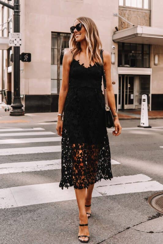 Fashion-Jackson-Wearing-Black-Lace-Midi-Dress-Black-Heeled-Sandals-Cocktail-Dress-1