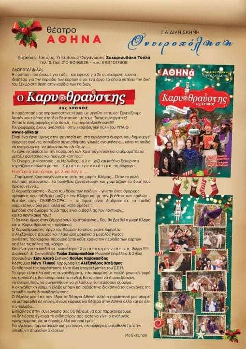 Η πρόταση που έχουμε για εσάς και εφέτος για 2η συνεχόμενη χρονιά ιδιαίτερα για την περίοδο των εορτών είναι ένα έργο το οποίο κατέχει την δική του ξεχωριστή θέση στην καρδιά των παιδιών .