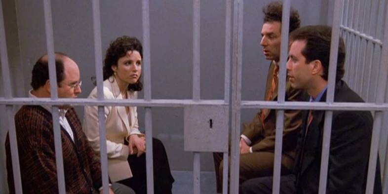 To Seinfeld αποτέλεσε την σειρά που εισήγαγε εν μέρει τα sitcoms στη ζωή μας. Μια σειρά που περιτριγυρίζει 4 εγωκεντρικούς νεουορκέζους, καταλήγει σε ένα επεισόδιο όπου οι ίδιοι δικάζονται που δεν βοήθησαν έναν συμπολίτη τους την ώρα που του έκλεβαν το αυτοκίνητο του. Μέσα σε εισαγωγικά πλαίσια, η ίδια η σειρά τους δικάζει για την εγωιστικότητά και τη μιζέρια τους. Στο τέλος καταλήγουν στην φυλακή, χωρίς να μετανοήσουν για τίποτα, προσφέροντας στο κοινό τους ένα αδιάφορο τέλος.